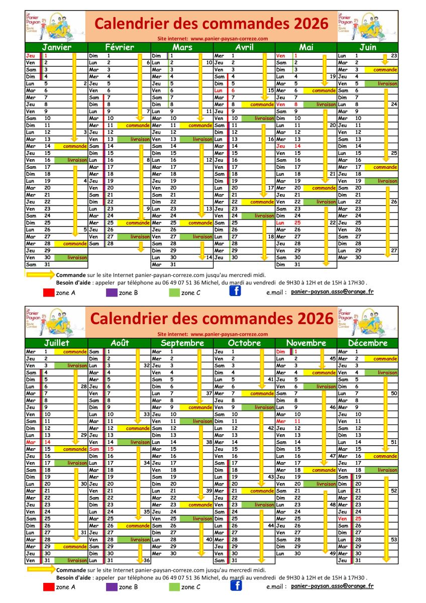 Calendrier 2026 du Panier Paysan de Haute-Corrèze :